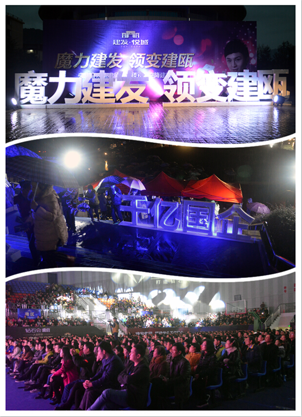 城市禮獻(xiàn),建甌『建發(fā)·悅城』的魔幻之夜『建發(fā)·悅城』大型魔術(shù)演出為建甌市民演繹一場(chǎng)魔幻盛典!活動(dòng)期間,更是熱情地投入到搶票大軍中?;顒?dòng)當(dāng)天即使大雨傾盆,依然擋不住觀眾的熱情,在活動(dòng)演出前一小時(shí),體育中心門口早已排起了長(zhǎng)長(zhǎng)的隊(duì)伍。